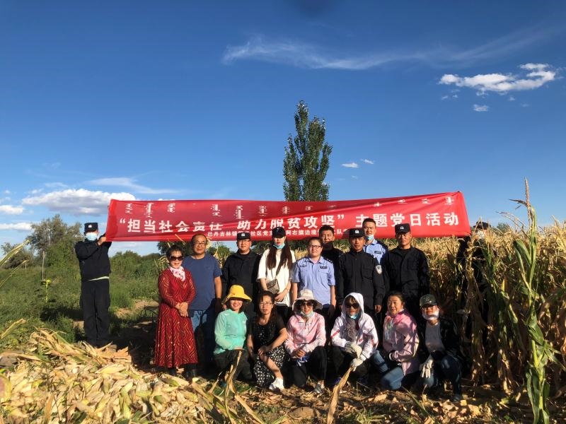 金秋時(shí)節(jié),大地金黃,碩果飄香,民警們頭頂烈日,揮舞鐮刀,有條不紊地收割著玉米,田間地頭中到處洋溢著爽朗的笑聲、彌漫著豐收的喜悅。這是在內(nèi)蒙古阿拉善右旗巴丹吉林鎮(zhèn)阿日毛道嘎查的莊稼地里,阿拉善邊境管理支隊(duì)的民警幫助群眾秋收的景象。