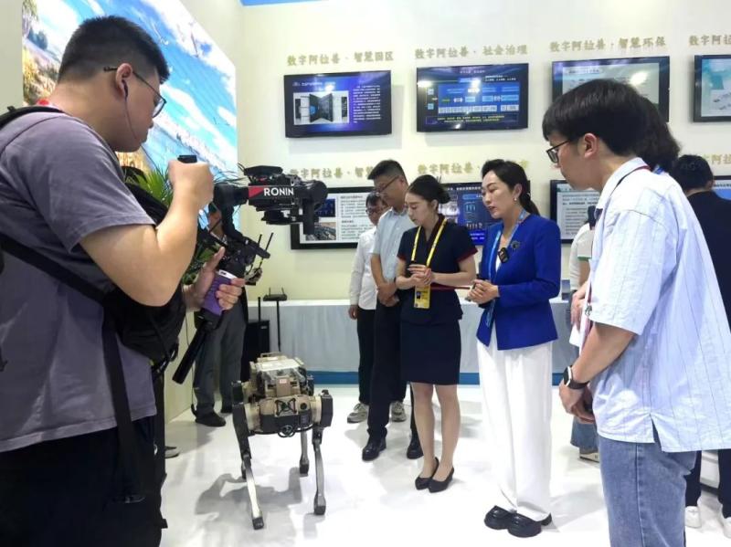 在“數(shù)智政務(wù)”體驗區(qū),參展嘉賓深入了解阿拉善盟依托一體化政務(wù)服務(wù)平臺實現(xiàn)政務(wù)事項“一網(wǎng)通辦”“掌上辦”的生動案例。實物陳列區(qū),全球首例駱駝瘤胃膠囊、“時光”雕刻機(jī)、“電子狗”“電子狼”等阿拉善盟應(yīng)用于各領(lǐng)域的諸多高科技產(chǎn)品一一亮相。在互動體驗區(qū),阿拉善禮物深受歡迎,“數(shù)字身份證”為阿拉善禮物追根溯源。同時,“阿拉善特色產(chǎn)業(yè)”平臺、“一億棵梭梭”互動系統(tǒng)、VR數(shù)游阿拉善等,充分體現(xiàn)了數(shù)字技術(shù)在特色產(chǎn)業(yè)、生態(tài)、文旅、政務(wù)領(lǐng)域的落地成效。