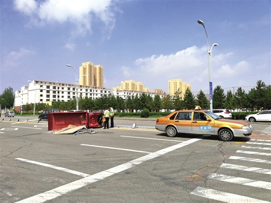 出租車駕駛員弓先生告訴記者:“當(dāng)時我駕車從北向南行駛,車上有一名乘客坐在副駕駛位置,正在此處停車等待掉頭時,后面的三輪車撞了上來,當(dāng)時撞擊的力度很大,把我的車撞出了線,三輪車側(cè)翻也撞倒了護(hù)欄。”弓先生說事故發(fā)生后乘客自行離開。三輪摩托車駕駛員姜先生身上多處擦傷,他說當(dāng)時車上只有他一人,也是北向南行駛。姜先生說:“車上拉載的都是裝修用具和材料,事故發(fā)生時有些蒙。”