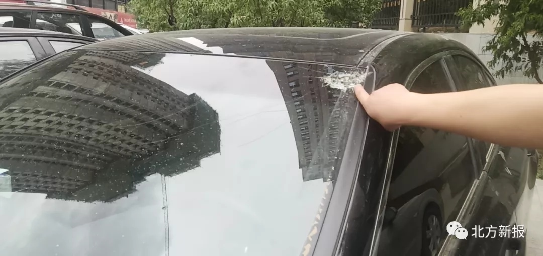 據(jù)車主段先生講,他的長安福特汽車前風擋玻璃上有一處直徑10厘米左右的放射性裂痕,車身也是傷痕累累。被砸傷的不僅是車輛,當時有一位路人也被高空墜物砸中腿部,好在傷的不厲害,只是破了皮。