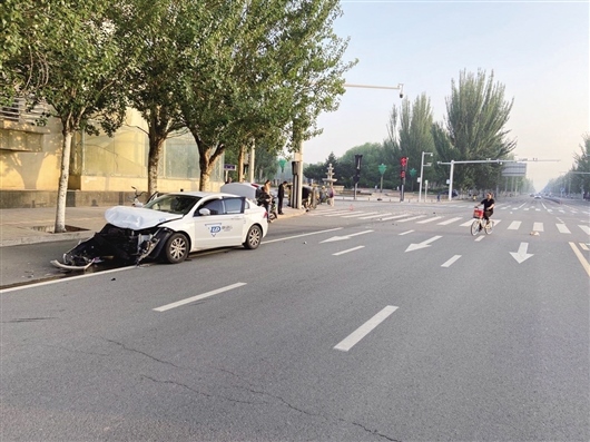 接到報(bào)警后,青山區(qū)交管大隊(duì)事故中隊(duì)民警趕往現(xiàn)場(chǎng),看到兩車不同程度受損,兩車內(nèi)各有一名駕駛員,二人不同程度受傷,所幸兩名駕駛員都系了安全帶,均為皮外傷。民警介紹,“經(jīng)過(guò)調(diào)查,當(dāng)時(shí)面包車提前采取了兩次制動(dòng)措施,并且已經(jīng)通過(guò)了路口中心點(diǎn),而白色共享汽車通過(guò)路口并未采取任何措施,也沒(méi)有進(jìn)行觀察。因此,駕駛共享汽車的駕駛員負(fù)該起事故的主要責(zé)任,小型面包車負(fù)次要責(zé)任?!泵窬硎荆掳l(fā)前這兩輛車只要有一輛“稍安勿躁”,事故就可以避免。(記者 宋美慧 攝影 馮超)