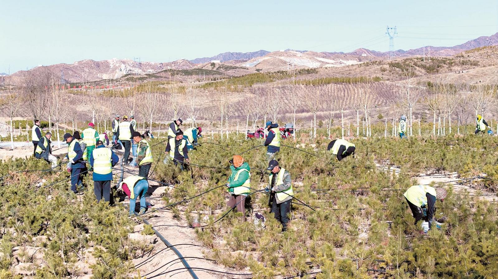 由東到西,從南向北,青苗綻翠,新綠生根。放眼包頭“三北”工程各旗縣區(qū)生態(tài)建設(shè)現(xiàn)場(chǎng),處處呈現(xiàn)出一片熱火朝天的繁忙景象。苗木搬運(yùn)、打孔、樹(shù)苗栽種、填土圍堰、澆水,人力與機(jī)械互相協(xié)作,科技與創(chuàng)新相得益彰。