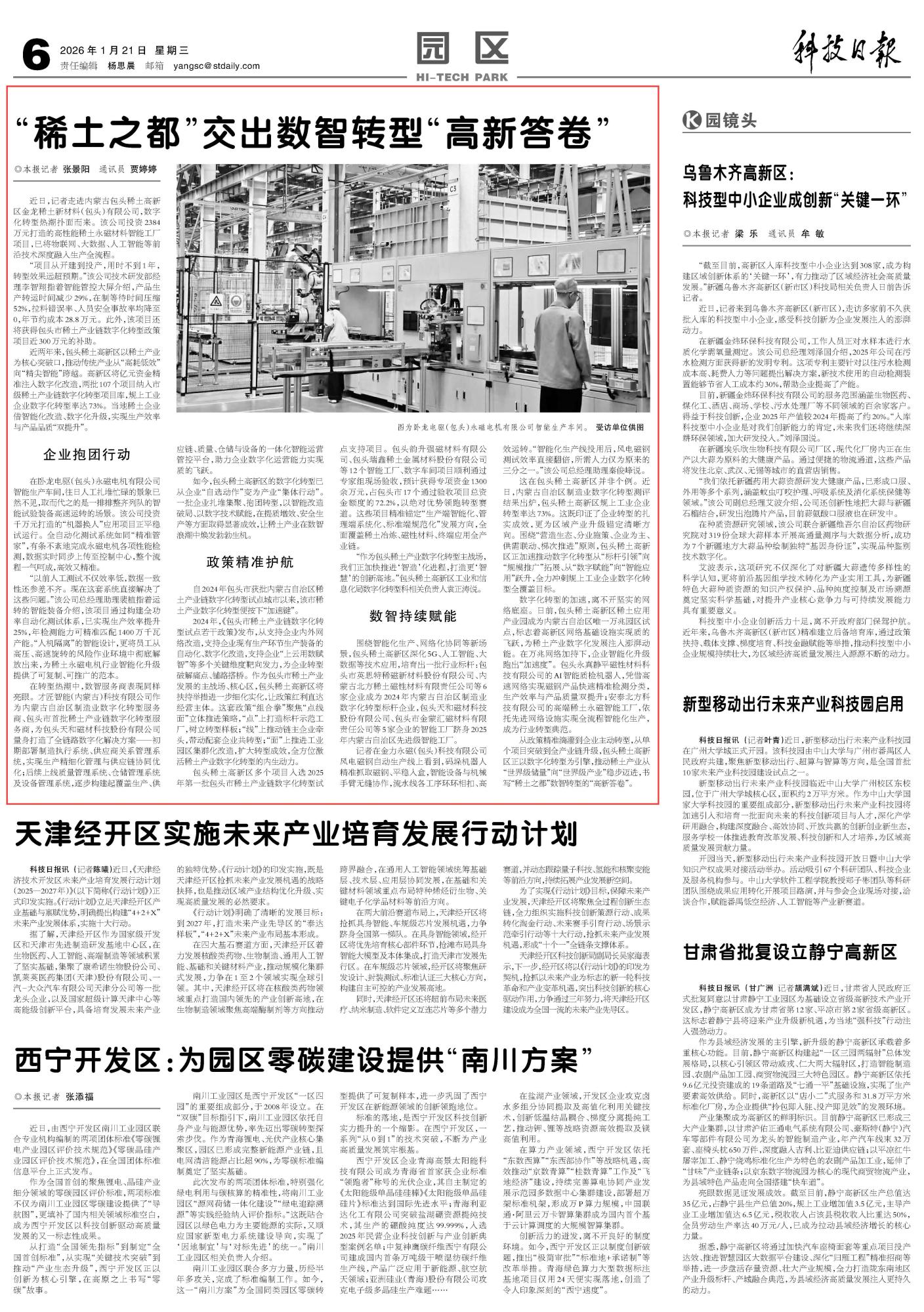 2026年1月21日《科技日報》第6版刊發(fā)了《“稀土之都”交出數(shù)智轉(zhuǎn)型“高新答卷”》的文章,報道了從政策精準(zhǔn)滴灌到企業(yè)主動轉(zhuǎn)型,從單個項目突破到全產(chǎn)業(yè)鏈升級,包頭稀土高新區(qū)正以數(shù)字化轉(zhuǎn)型為引擎,推動稀土產(chǎn)業(yè)從“世界級儲量”向“世界級產(chǎn)業(yè)”穩(wěn)步邁進(jìn),書寫“稀土之都”數(shù)智轉(zhuǎn)型的“高新答卷”。