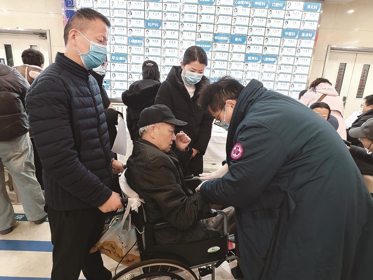 當(dāng)日上午9時(shí)許,包鋼三醫(yī)院門(mén)診大廳已經(jīng)是人頭攢動(dòng)。大廳里的“包頭市‘防殘減殘助殘暖冬行動(dòng)’篩查服務(wù)”指示牌格外醒目,抽血、CT、眼科、口腔等專設(shè)服務(wù)窗口前有許多殘疾人朋友在排隊(duì)等候,醫(yī)護(hù)人員引導(dǎo)殘疾人朋友接受檢查,來(lái)自北京的專家正在為一位坐在輪椅上的肢殘人士進(jìn)行下肢功能檢查,手法專業(yè)而細(xì)致。