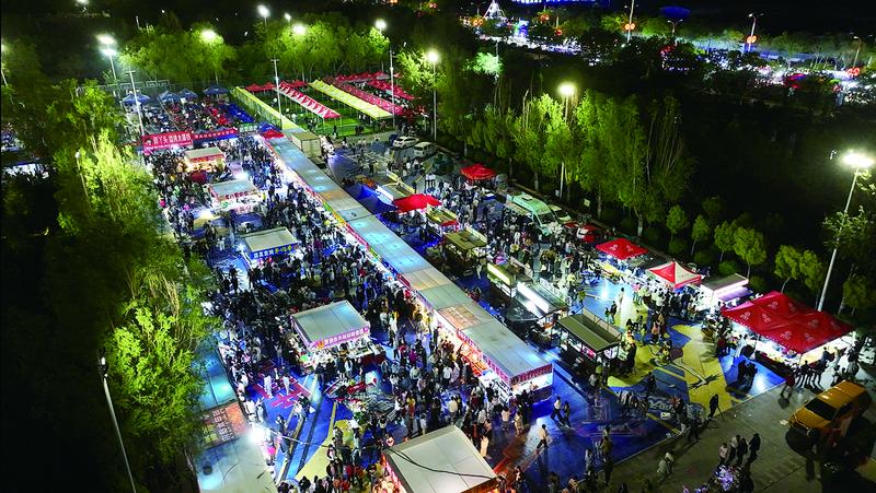 5月17日晚,杭錦后旗體育公園內(nèi)人潮涌動,杭錦后旗“5·19中國旅游日”嗨音尋味暨“陜壩味道”大型美食活動在這里開幕。