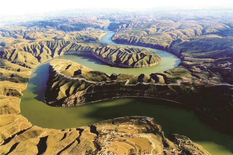 一瀉千里奔騰向前的黃河,在即將告別鄂爾多斯高原之際忽然變得戀戀不舍,繞著準(zhǔn)格爾大峽谷迂回徘徊,留下了兩個(gè)接近360度的大轉(zhuǎn)彎。青山不墨,綠水無(wú)語(yǔ),卻肩并肩勾勒出流傳千秋的畫卷——“太極灣”。