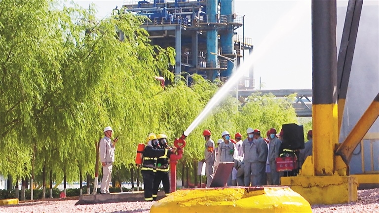 演練過程模擬內(nèi)蒙古鄂爾多斯電力冶金集團股份有限公司氯堿化工分公司PVC一工廠在生產(chǎn)過程中,PVC分廠VCM裝置GDS有毒氣體報警監(jiān)控蜂鳴報警,經(jīng)確認(rèn)為氯乙烯A球罐進口根部法蘭泄漏,事故處置過程中,一名現(xiàn)場員工吸入氯乙烯氣體中毒需及時救治。同時,隨著泄漏的擴散,如果處置不當(dāng),會引發(fā)著火爆炸、人員中毒及環(huán)境污染事故。為避免事態(tài)的進一步擴大,相繼啟動了氯堿化工分公司生產(chǎn)安全事故應(yīng)急預(yù)案、鄂托克旗危險化學(xué)品泄漏事故應(yīng)急預(yù)案。通過公司應(yīng)急救援力量、政府應(yīng)急救援力量的協(xié)同救援,采取疏散人員、搶救傷員、堵漏、倒罐等處置措施,成功控制住了氯乙烯A球罐泄漏,及時有效的控制事態(tài)的發(fā)展,完成氯乙烯A球罐泄漏事故搶險救援工作。演練達到了預(yù)期的效果。