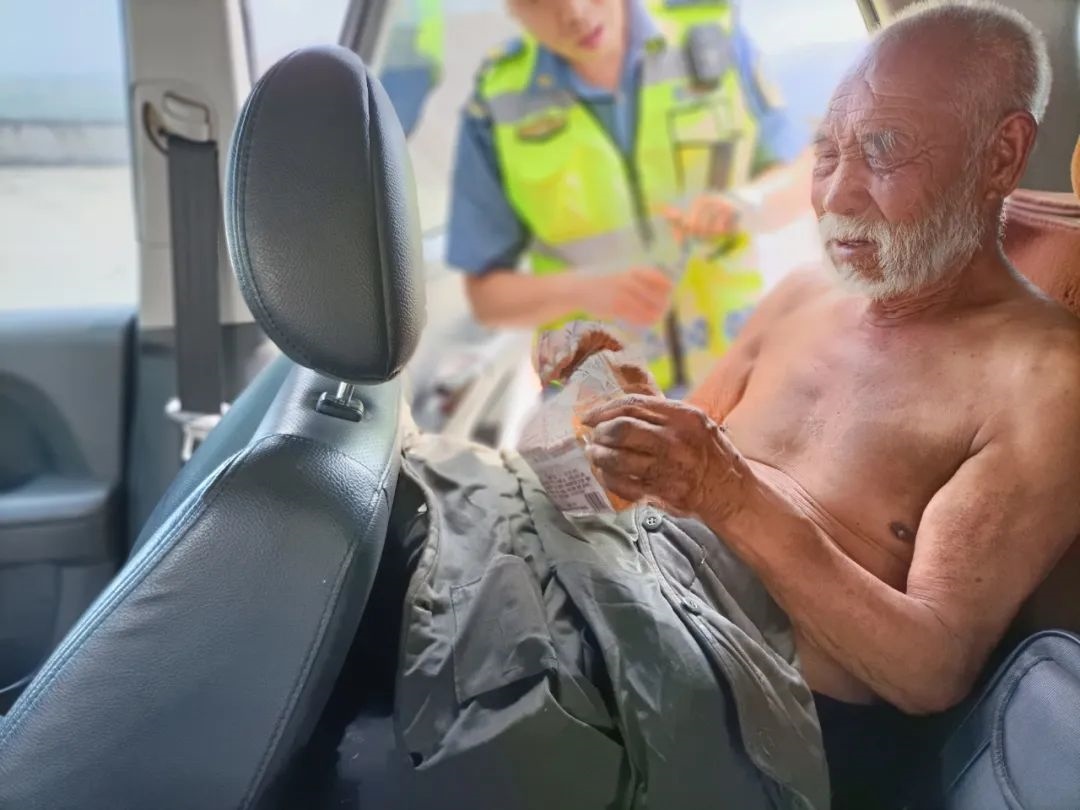 7月27日10時(shí)10分許,內(nèi)蒙古自治區(qū)公路路政執(zhí)法監(jiān)察總隊(duì)呼和浩特支隊(duì)第三大隊(duì)的李超和張鵬飛在呼北高速公路巡查過程中,發(fā)現(xiàn)一位老人光著膀子獨(dú)自走在高速公路中間,快速行駛的車輛不時(shí)從老人身邊呼嘯而過,稍有不慎就可能引發(fā)重大道路交通事故。