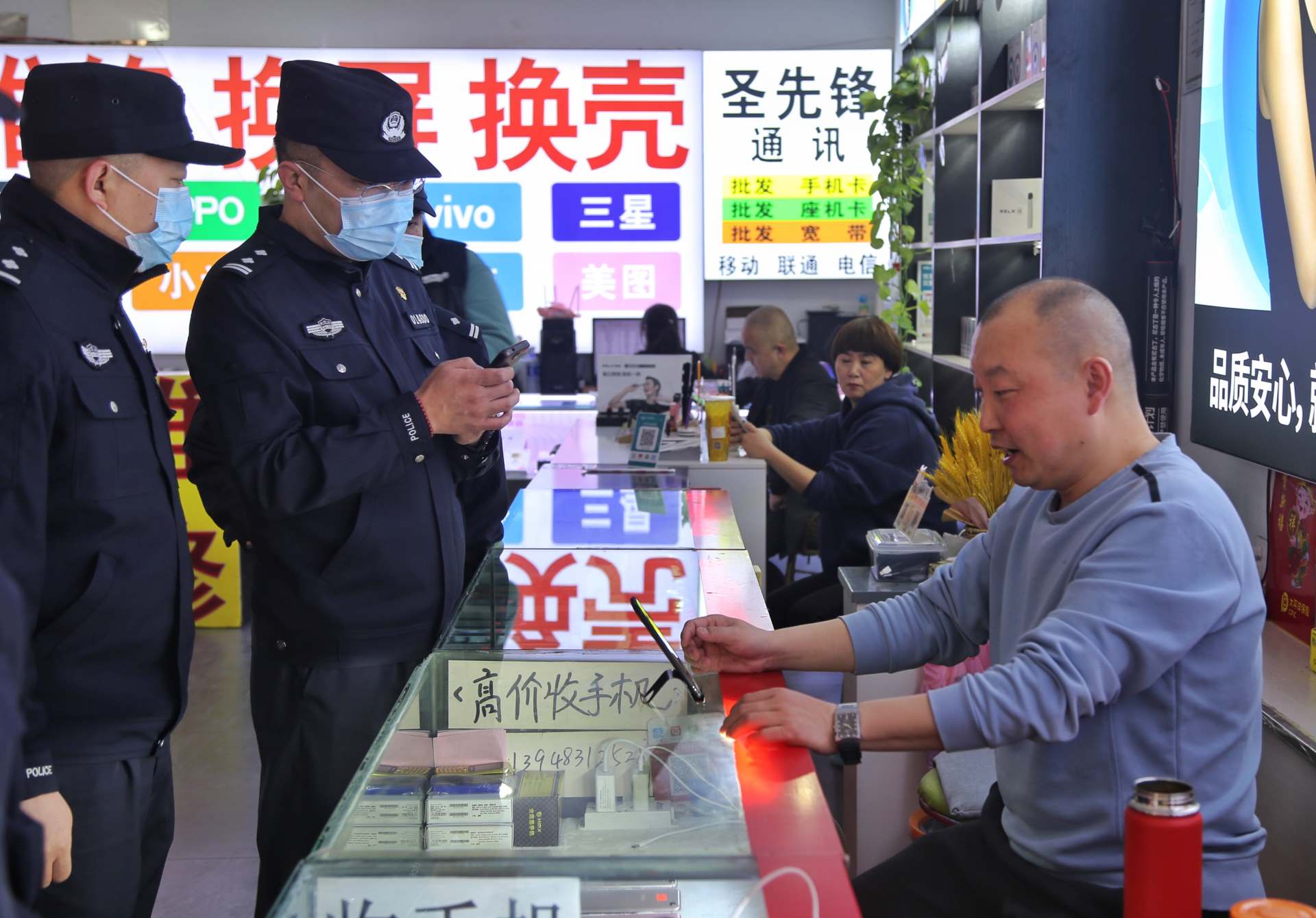 按照預定方案,行動分為四組,兩組對永和二手手機市場和眾興二手手機市場進行突擊清查,另兩組以便衣形式對周圍流動收售手機人員進行排查。行動期間,民警對二手手機銷售店鋪內的手機和工作人員情況進行清查,逐一對照登記臺賬,嚴格檢查落實情況,同時向經營業(yè)主及市民進行法制宣傳教育。此次行動共排查登記二手手機850部,買賣二手手機人員50余人,檢查二手手機商戶22家,暫扣未履行登記手機30余部。