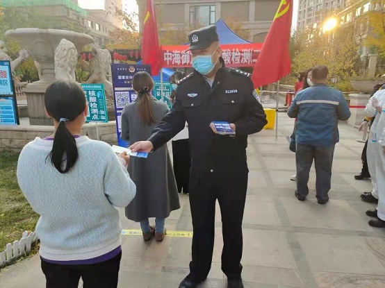 北疆新聞網(wǎng)、北疆新聞APP、北疆云消息(劉利平)10月29日——30日,呼和浩特市開展第二輪核酸檢測工作。在各個檢測點上,除了醫(yī)務(wù)人員、社區(qū)工作者、黨員志愿者、物業(yè)工作人員,還有一些人默默地守候在現(xiàn)場,如果檢測現(xiàn)場秩序井然,大家可能誰都不會注意到他們的存在,可一旦有人妄圖插隊、不遵守現(xiàn)場秩序,他們就會第一時間出現(xiàn)。他們就是派出所的民警。