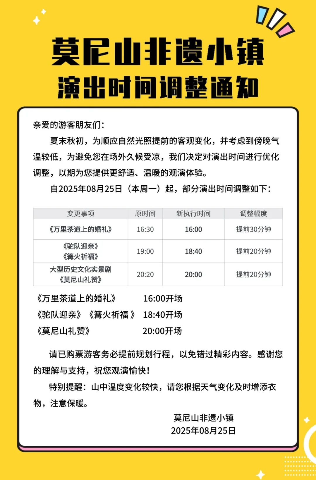 部分演出時間進行調(diào)整