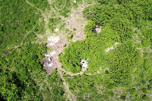 無人機(jī)傳回的非法采挖野生藥材窩點(diǎn)現(xiàn)場畫面。