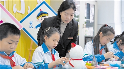“全國大眾冰雪季給我們帶來了一個(gè)絕佳的主題切入點(diǎn),讓傳統(tǒng)的羊毛氈工藝與冰雪運(yùn)動(dòng)相互交融碰撞,孩子們?cè)诖链萄蛎倪^程中,對(duì)冰雪文化有了更深層次的理解,也對(duì)非遺技藝充滿敬意?!苯】到中W(xué)美術(shù)教師山丹邊說邊悉心指導(dǎo)學(xué)生把握形狀、色彩與紋理,幫助他們將創(chuàng)意更好地在羊毛氈作品中呈現(xiàn)?!拔以谥谱鬟@個(gè)滑雪小人的時(shí)候,就一直在想自己滑雪時(shí)的快樂,每戳一針都很用心,希望能把這份快樂表現(xiàn)在作品里?!彼哪甓鄬W(xué)生宋子祺說。