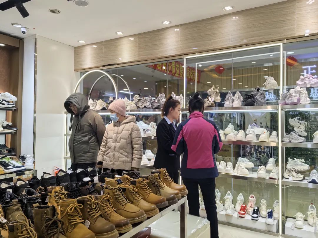 在地下商業(yè)街,多家服飾品店內(nèi)掛滿(mǎn)色彩鮮艷的春季新品,輕盈的薄款外套、舒適的休閑褲、時(shí)尚的運(yùn)動(dòng)鞋,各種款式應(yīng)有盡有,新品擺放得井井有條,整潔美觀(guān)的店鋪吸引來(lái)絡(luò)繹不絕的消費(fèi)者前來(lái)挑選春裝,店員熱情周到地提供咨詢(xún)和選購(gòu)建議,給顧客帶來(lái)舒適的購(gòu)物體驗(yàn),帶著心儀的春裝滿(mǎn)意而歸。