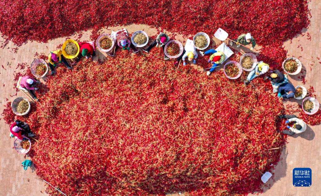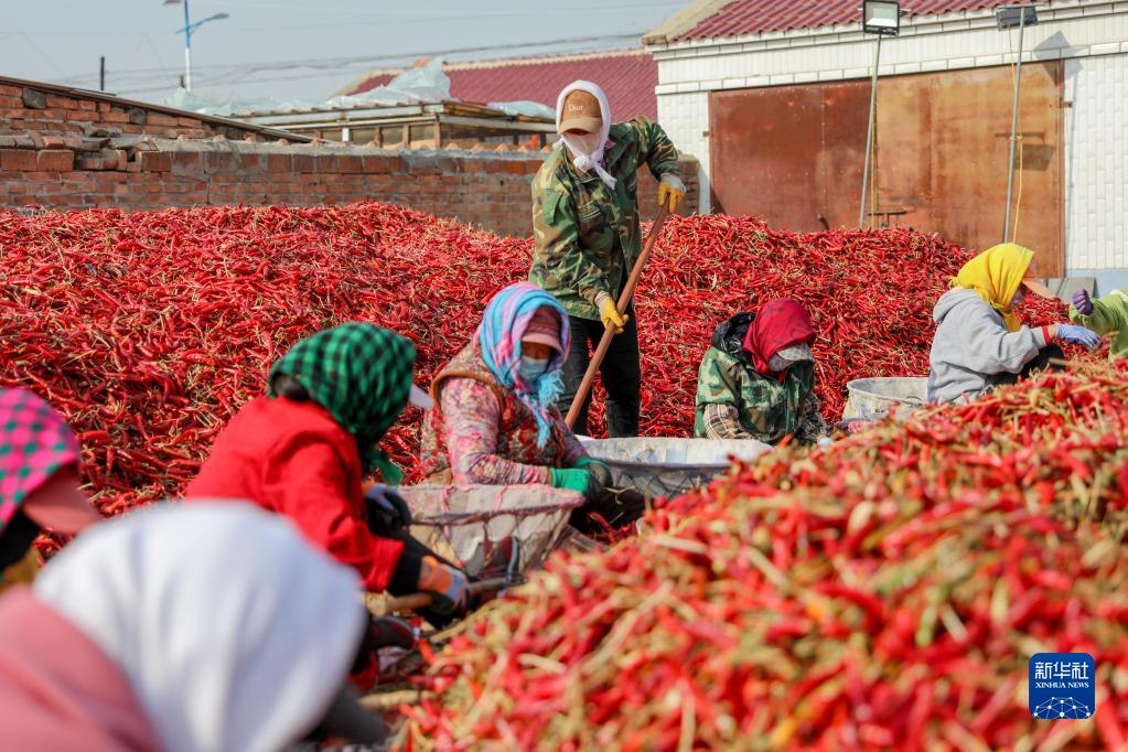 近日,內(nèi)蒙古通遼市開魯縣迎來紅干椒收獲銷售旺季。開魯縣紅干椒皮紅肉厚、品質(zhì)優(yōu)良,產(chǎn)品暢銷國內(nèi)外市場(chǎng)。近年來,開魯縣紅干椒種植面積穩(wěn)定在60萬畝。新華社記者 連振 攝