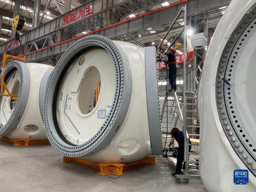 “公司2020年12月在烏蘭察布市注冊(cè)成立,今年5月中旬建成投產(chǎn),如今已具備每天生產(chǎn)2臺(tái)套風(fēng)機(jī)的生產(chǎn)能力?!痹跒跆m察布運(yùn)達(dá)風(fēng)電有限公司的生產(chǎn)車間里,公司副總經(jīng)理常偉指著一臺(tái)正在組裝的風(fēng)機(jī)說(shuō),“我國(guó)風(fēng)機(jī)研發(fā)能力及技術(shù)水平正逐年向國(guó)際水平靠攏,曾經(jīng)風(fēng)機(jī)的單機(jī)容量只有750千瓦,目前我們車間里生產(chǎn)的風(fēng)機(jī)單機(jī)容量已超過(guò)6000千瓦?!?/p>