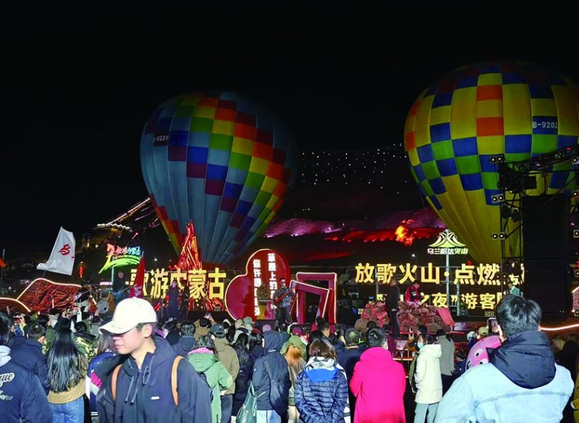 夜幕降臨,3號(hào)火山下的“歌游內(nèi)蒙古?游客嗨歌季”活動(dòng)將氛圍推向高潮。星空下,馬頭琴與電子樂(lè)跨界融合,激昂旋律在火山群間回蕩。游客圍繞篝火載歌載舞?;顒?dòng)最后,盛大的煙花秀劃破夜空,為一天的游玩畫(huà)上句號(hào)。來(lái)自北京的游客劉易表示:“這是我第一次來(lái)烏蘭哈達(dá)火山,這里景致壯觀,文化活動(dòng)豐富,服務(wù)貼心,讓我感受到獨(dú)特的草原魅力。”