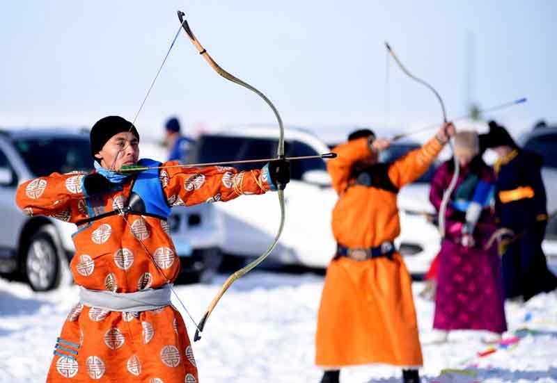 在冰雪覆蓋的草原上,成年駱駝10公里比賽、駱駝選美及128名青壯年搏克賽、射箭比賽等10余項(xiàng)賽事逐一上演,扮靚了寂靜的冬日草原。