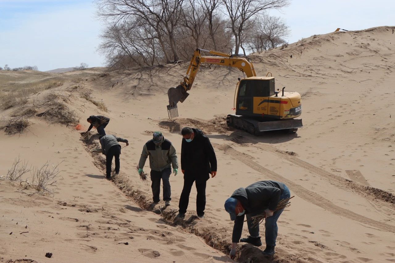 改裝后的挖掘機在治沙工作中展現(xiàn)出了強大的優(yōu)勢。據(jù)了解,以往人工種植時,兩個人一天才能完成一畝地的工作量,五個人最多也只能處理兩畝半到三畝地。而如今,改裝后的挖掘機一天的工作量相當于五個人種植十畝地,不僅大大提升了工作效率,還節(jié)約了大量的人力和物力。原本只能用于挖掘作業(yè)的鉤機,經(jīng)過簡單改裝后,搖身一變成為防塵固沙的“利器”,為沙漠治理工作注入了新的活力。目前,合作社已投入兩臺改裝挖掘機進行作業(yè),并計劃在未來將其數(shù)量增加至五臺,以確保按時完成2025年規(guī)劃中8.4萬畝的治理任務(wù)。