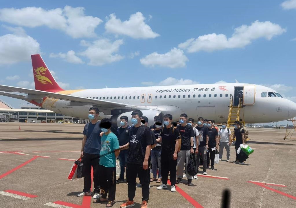 這是辦案民警將部分犯罪嫌疑人押解回通遼市的場景。(受訪單位供圖)