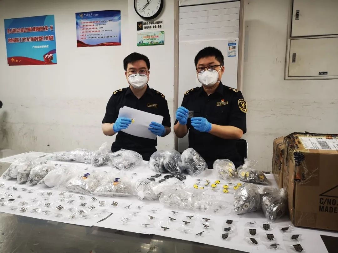 記者5月12日從廣州海關(guān)獲悉,該關(guān)近日在廣州白云機(jī)場空港口岸出境快件渠道查獲一批納粹徽章,共9個(gè)品種、1881枚。目前,已作進(jìn)一步處理。