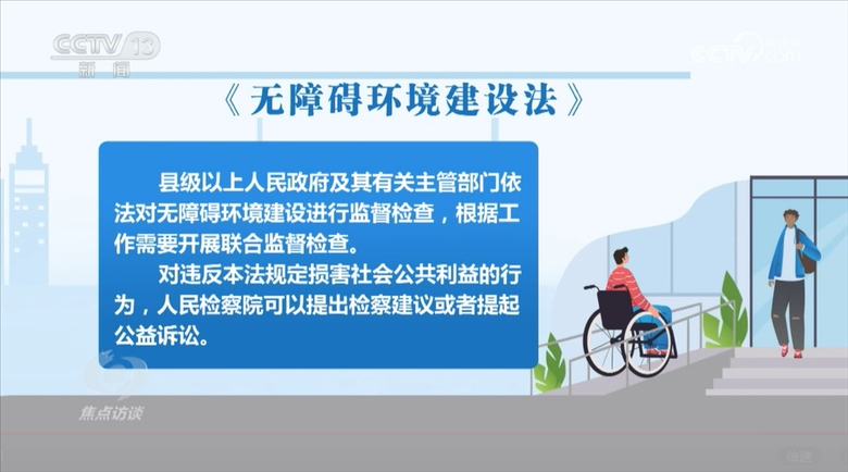 央視網(wǎng)消息(焦點(diǎn)訪談):2023年9月1日,又有一部新法——《中華人民共和國無障礙環(huán)境建設(shè)法》正式施行,這是我國第一部關(guān)于無障礙環(huán)境建設(shè)的專門性法律。無障礙環(huán)境建設(shè)是社會文明程度的體現(xiàn),尤其和殘疾人、老年人的生活息息相關(guān),它涵蓋的不僅僅是盲道、出入建筑物的通道等各種無障礙設(shè)施的建設(shè),也包括了無障礙社會服務(wù)、無障礙信息交流等等。那么目前我國的無障礙環(huán)境建設(shè),急需要解決哪些問題?新法作出了哪些規(guī)定,將從哪些方面來推動無障礙環(huán)境建設(shè)呢??