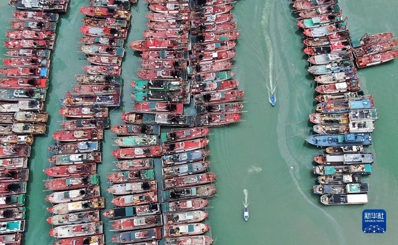 臺風(fēng)“蘇拉”靠近粵東近海,廣東省汕尾港避風(fēng)塘,漁船歸港避風(fēng)。