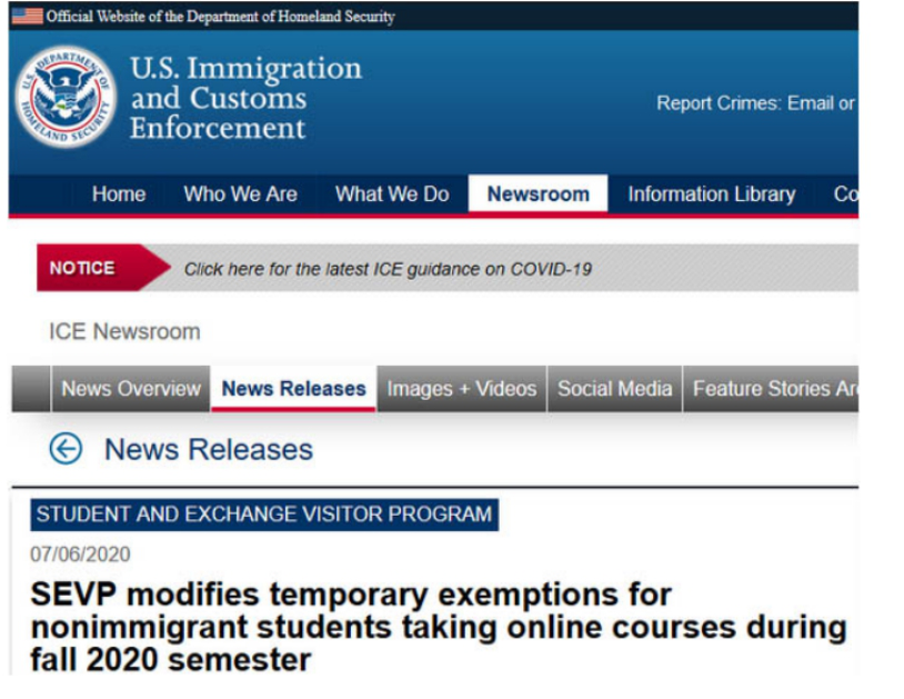 當(dāng)?shù)貢r(shí)間7月6日,針對(duì)美國(guó)高校今年秋天將開(kāi)始的課程,美國(guó)移民與海關(guān)執(zhí)法局(ICE)發(fā)布了一項(xiàng)新規(guī)定,大致是這么幾個(gè)意思:
