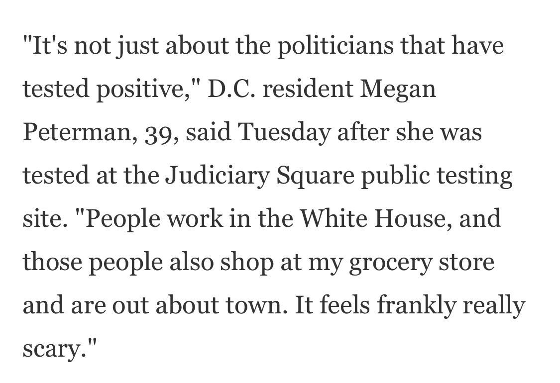 華盛頓居民梅根·彼得曼在當(dāng)?shù)貢r間6日做了核酸檢測,她說:“最近許多白宮官員確診新冠肺炎,白宮工作人員也可能來過我的商店購物,說實話挺嚇人的。”