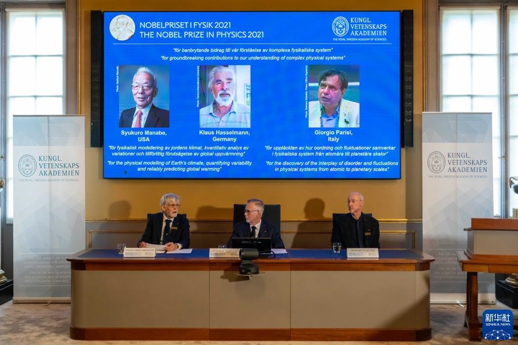 新華社斯德哥爾摩10月5日電(記者和苗 付一鳴)瑞典皇家科學院5日宣布,將2021年諾貝爾物理學獎授予三名科學家,其中,日裔美籍科學家真鍋淑郎和德國科學家克勞斯·哈塞爾曼因“建立地球氣候的物理模型、量化其可變性并可靠地預測全球變暖”的相關(guān)研究獲獎,意大利科學家喬治·帕里西因“發(fā)現(xiàn)了從原子到行星尺度的物理系統(tǒng)中無序和波動的相互作用”而獲獎?! ?br/>