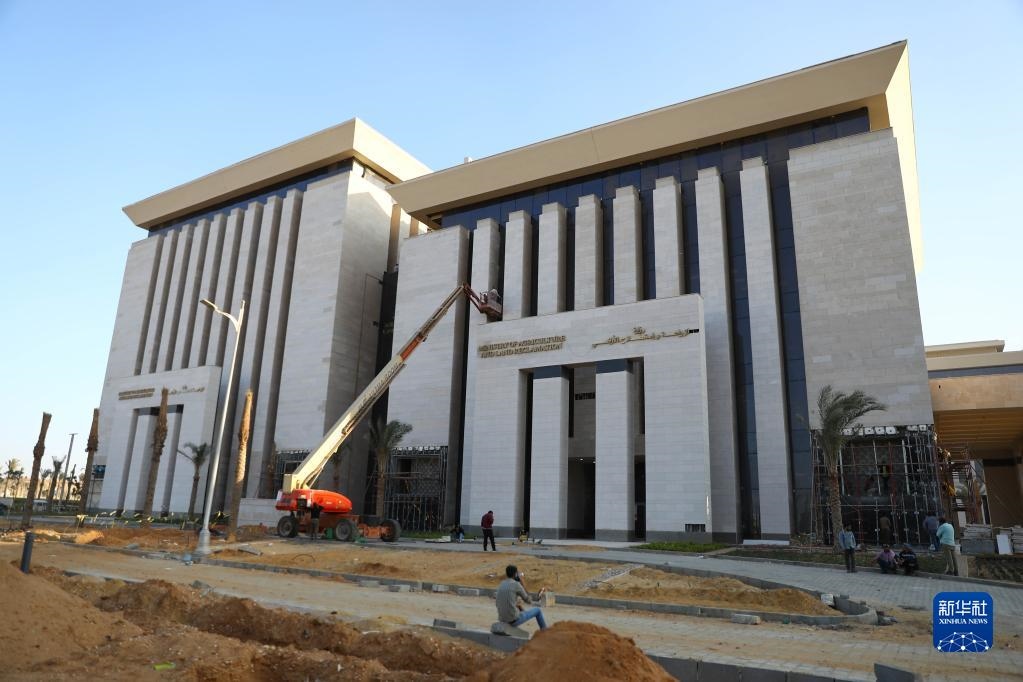 11月3日,工人在埃及新行政首都的農(nóng)業(yè)與土地改造部新大樓外施工。新華社發(fā)(艾哈邁德·戈馬攝)