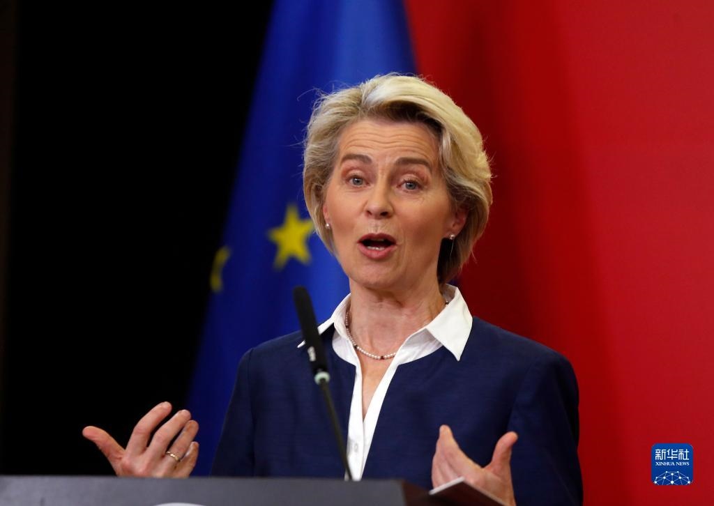 10月26日,在北馬其頓斯科普里,歐盟委員會(huì)主席馮德萊恩在與北馬其頓總理科瓦切夫斯基(不在畫面中)舉行的聯(lián)合新聞發(fā)布會(huì)上講話。新華社發(fā)(托米斯拉夫·格奧爾基耶夫 攝)