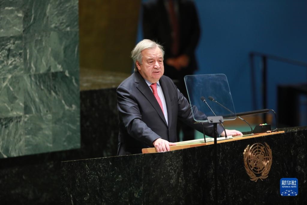 2月6日,在位于紐約的聯(lián)合國(guó)總部,聯(lián)合國(guó)秘書長(zhǎng)古特雷斯發(fā)表講話。新華社記者 謝鍔 攝