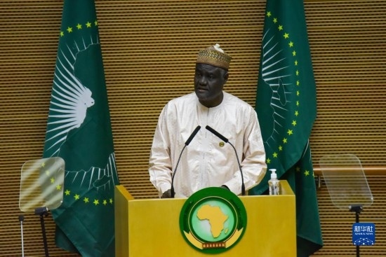 2月18日,在埃塞俄比亞亞的斯亞貝巴,非盟委員會(huì)主席法基在非盟第36屆首腦會(huì)議上發(fā)表講話。