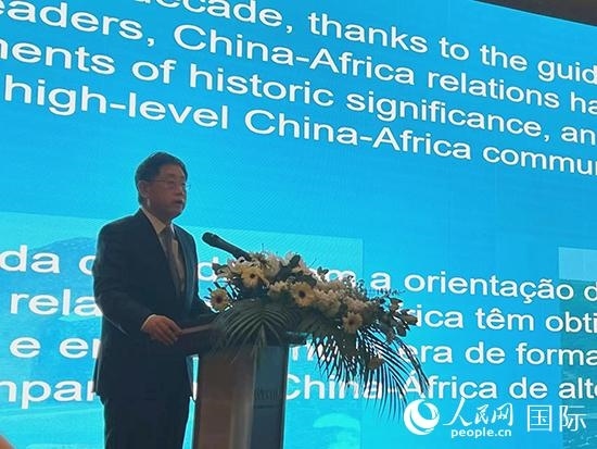 安哥拉駐華大使若昂·薩爾瓦多·多斯·桑托斯·內(nèi)圖致辭。人民網(wǎng) 武妍虹攝