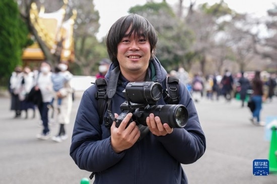 2月19日,在日本東京上野動(dòng)物園,為大熊貓“香香”舉辦過(guò)攝影展的博主高氏貴博準(zhǔn)備用相機(jī)記錄當(dāng)天的“香香”。新華社記者 張笑宇 攝