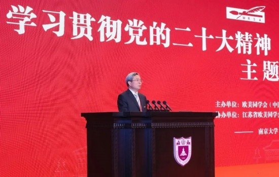 惠建林代表中共江蘇省委表示,要深入學(xué)習(xí)貫徹習(xí)近平總書記關(guān)于做好新時(shí)代黨的統(tǒng)一戰(zhàn)線工作的重要思想,一如既往重視和加強(qiáng)歐美同學(xué)會(huì)組織建設(shè),強(qiáng)化留學(xué)人員思想政治引領(lǐng),引導(dǎo)全省廣大留學(xué)人員學(xué)深悟透黨的二十大精神,堅(jiān)定不移聽黨話跟黨走,自覺做“兩個(gè)確立”的堅(jiān)定信仰者和“兩個(gè)維護(hù)”的忠實(shí)踐行者,把愛國(guó)之情、強(qiáng)國(guó)之志、報(bào)國(guó)之行融入到新時(shí)代新征程的偉大奮斗中,為全面推進(jìn)中國(guó)式現(xiàn)代化江蘇新實(shí)踐,更好扛起新使命、譜寫新篇章匯聚磅礴力量。
