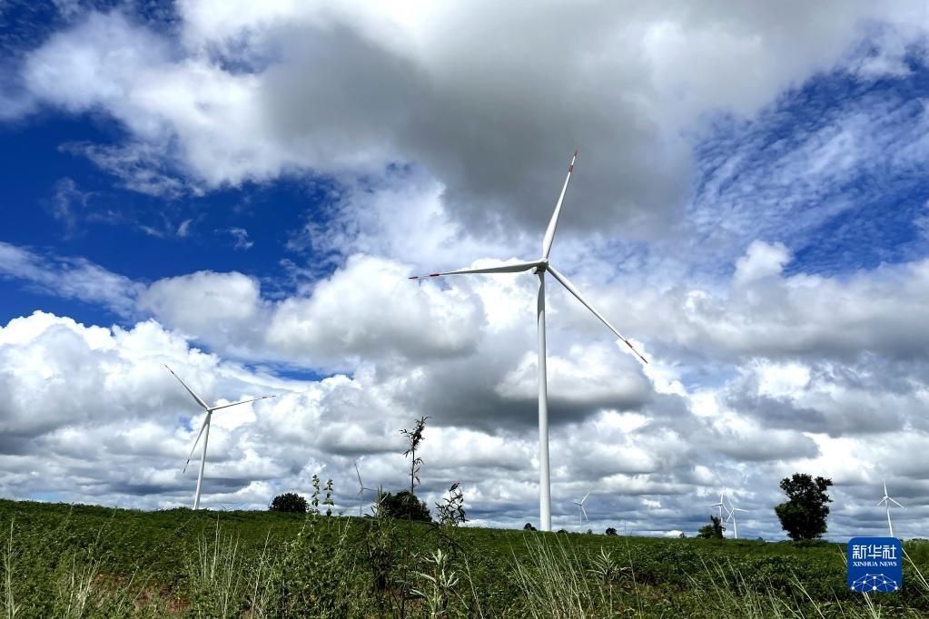 這是2022年10月4日在泰國猜也蓬府拍攝的由中國金風(fēng)科技提供的風(fēng)力發(fā)電機(jī)。新華社記者 宋宇 攝