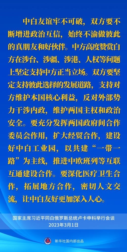 3月1日,國家主席習(xí)近平在人民大會堂同來華進行國事訪問的白俄羅斯總統(tǒng)盧卡申科舉行會談。一起來看習(xí)近平主席的談話要點。