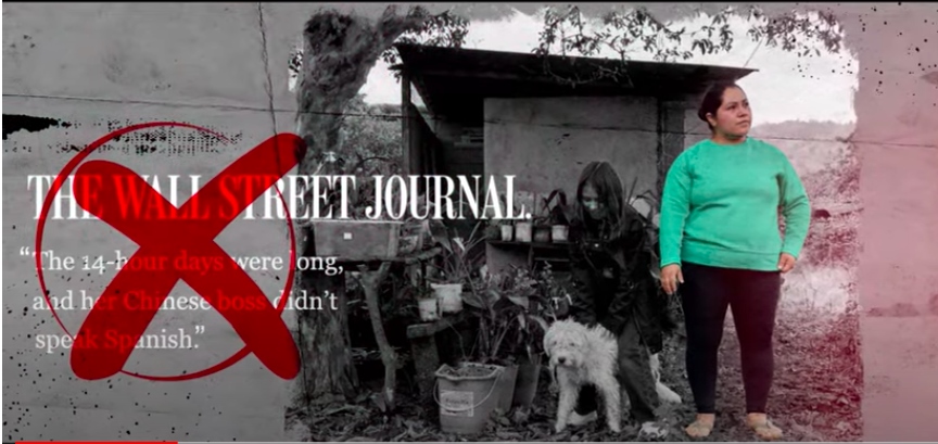 《華爾街日?qǐng)?bào)》在文章中提到厄瓜多爾科卡科多-辛克雷水電站附近兩名當(dāng)?shù)厝耍瑢?duì)她們的話語斷章取義,以此暗示讀者,當(dāng)?shù)厝恕皩?duì)中國企業(yè)心懷不滿”以及中國公司“強(qiáng)迫當(dāng)?shù)貑T工加班且工作環(huán)境惡劣”。