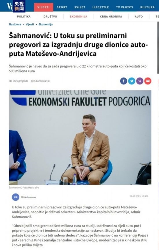 黑山資本投資部國務秘書沙赫馬諾維奇在發(fā)言中表示,近年來,在共建“一帶一路”倡議和中國-中東歐國家合作機制的推動下,中國同包括黑山在內(nèi)的各國共享發(fā)展機遇,兩國在交通基礎設施、新能源等領域合作成果豐碩。