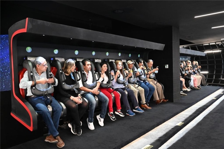 5月2日,洪都拉斯媒體代表團(tuán)一行在重慶市規(guī)劃展覽館體驗“飛越重慶”飛行影院。新華社記者 趙佳樂 攝