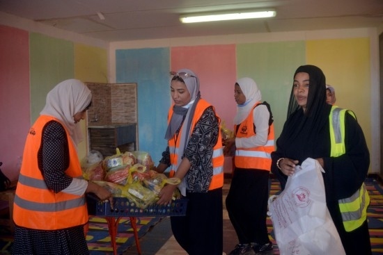 5月2日,在埃及南部阿斯旺省,工作人員為逃離蘇丹進(jìn)入埃及的難民準(zhǔn)備救濟(jì)包裹。新華社發(fā)(拉德萬(wàn)攝)