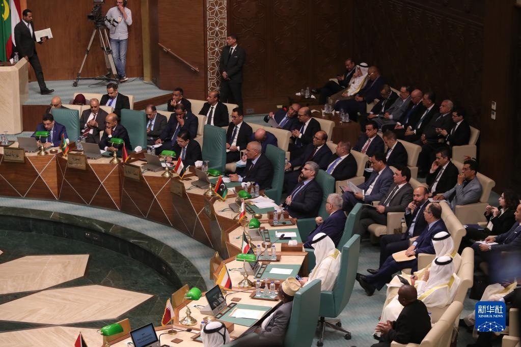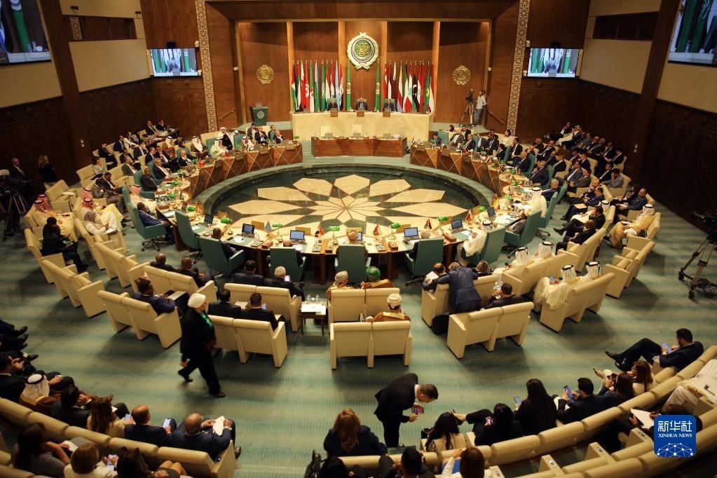 這是5月7日在埃及開羅拍攝的阿拉伯國家聯(lián)盟外長級特別會(huì)議現(xiàn)場。