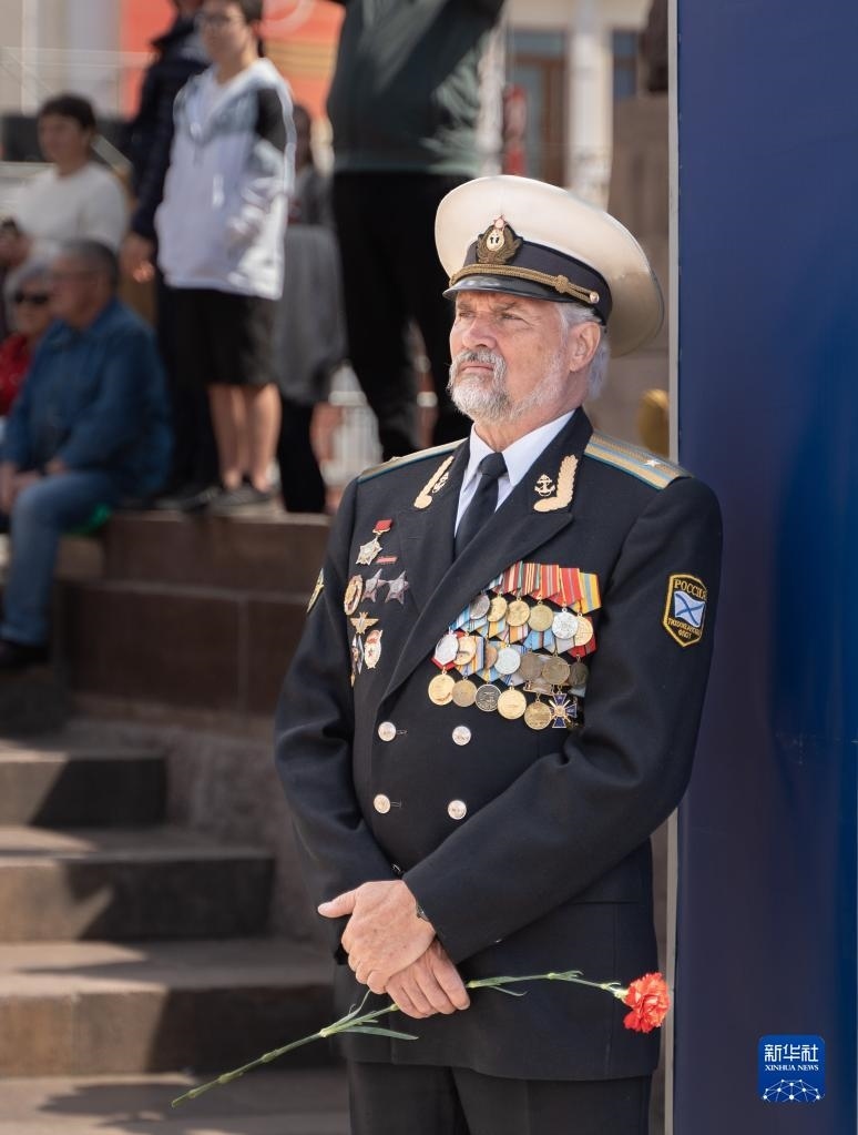 5月9日,在俄羅斯符拉迪沃斯托克,一位老兵參加勝利日慶?;顒?dòng)。