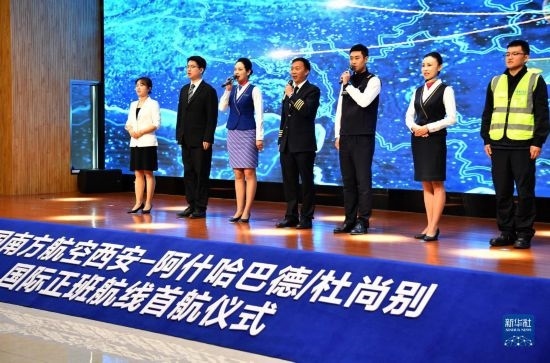 5月13日,西安-阿什哈巴德/杜尚別國(guó)際正班航線首航儀式在西安舉行。