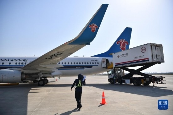 5月13日,西安-烏魯木齊-阿什哈巴德首趟航班在進(jìn)行飛行前的準(zhǔn)備工作。