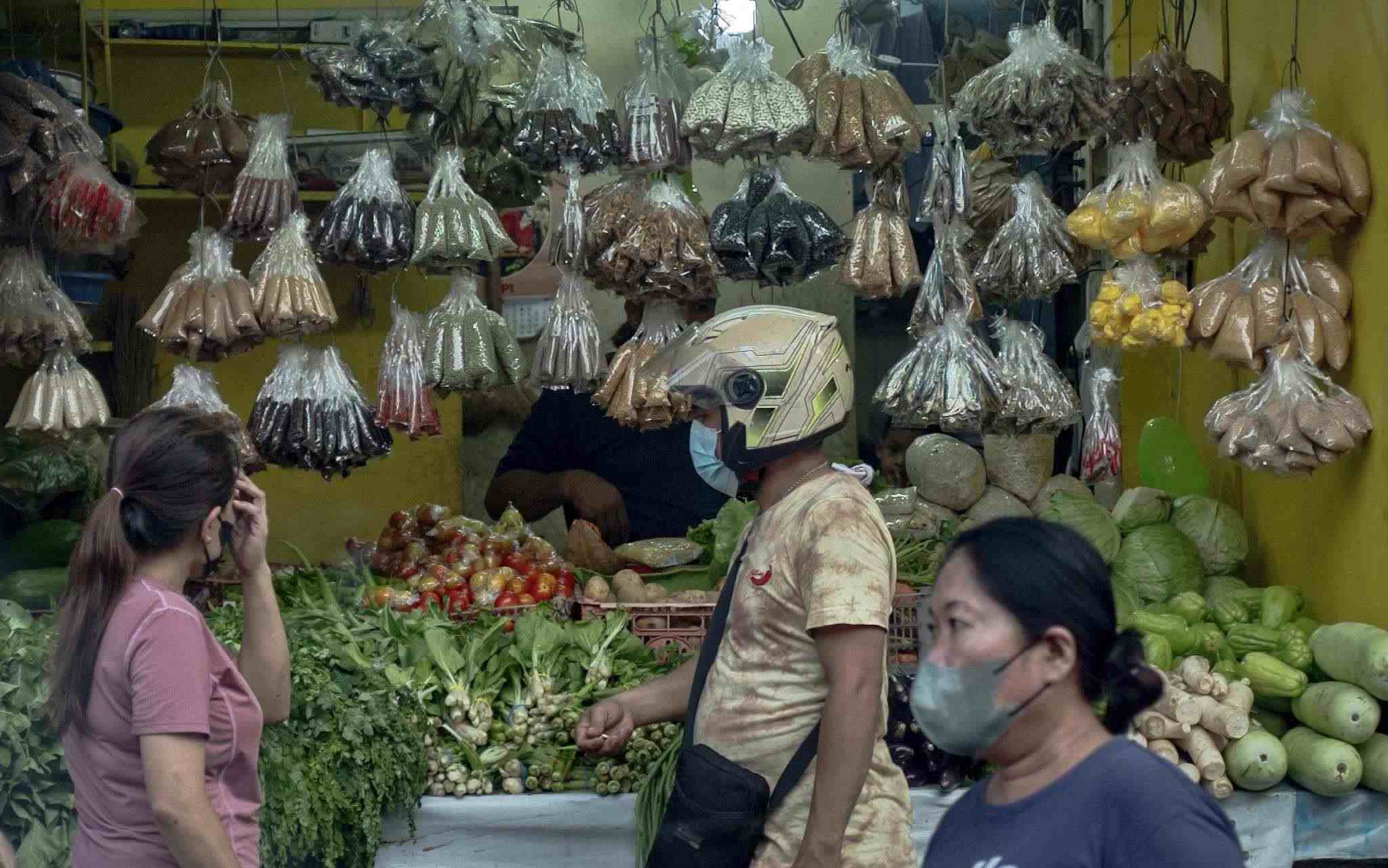 當地時間2023年4月19日,菲律賓馬尼拉,在奎松市的菜市場,塑料包裝的不同商品在出售。