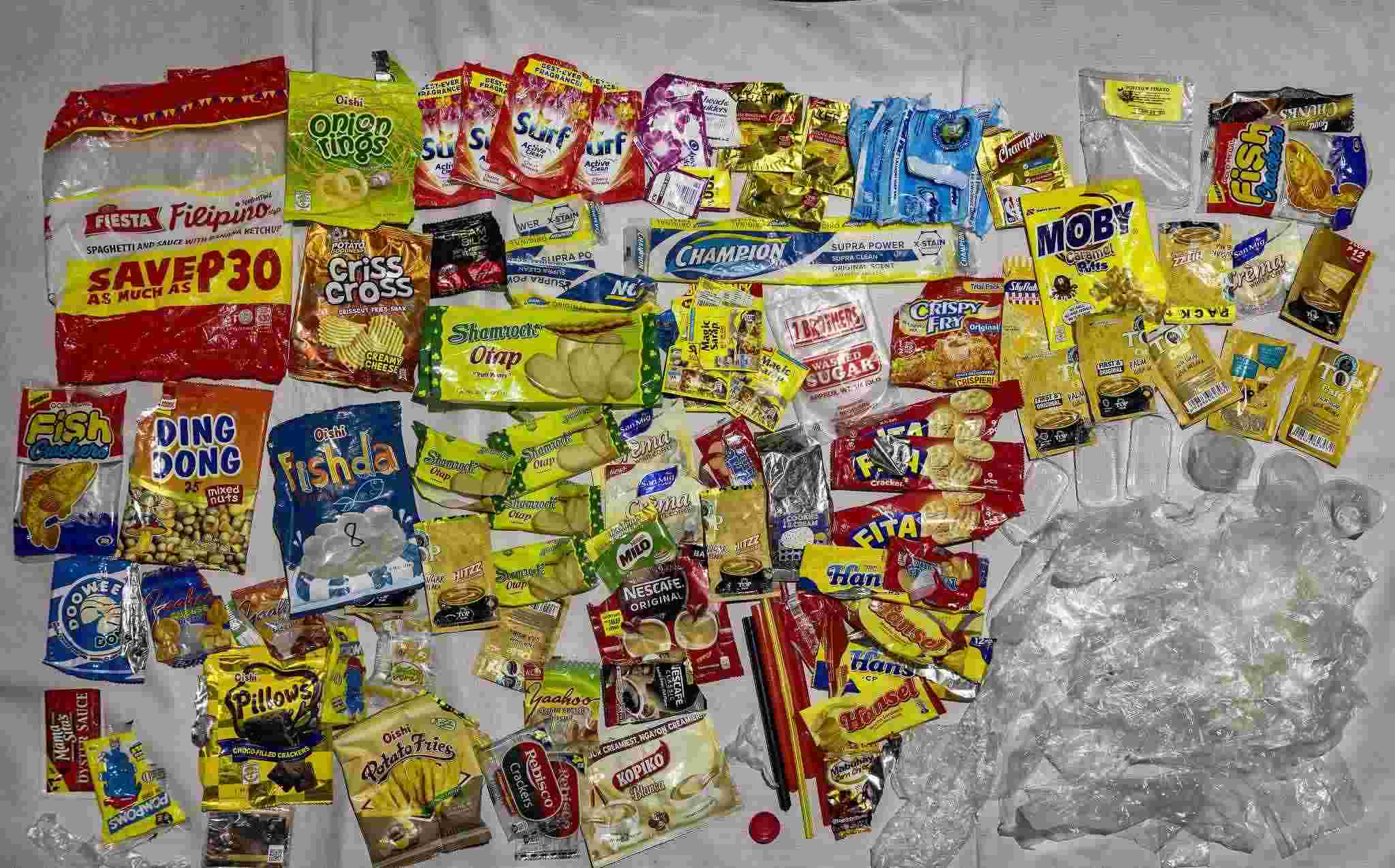 當地時間2023年4月20日,菲律賓馬尼拉,奎松市,Mercado家在一周內產生的塑料垃圾。