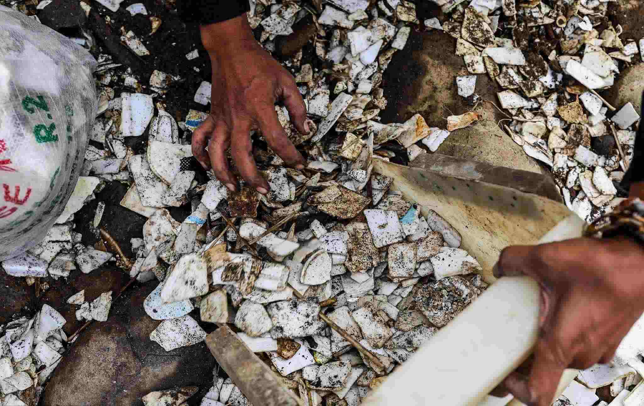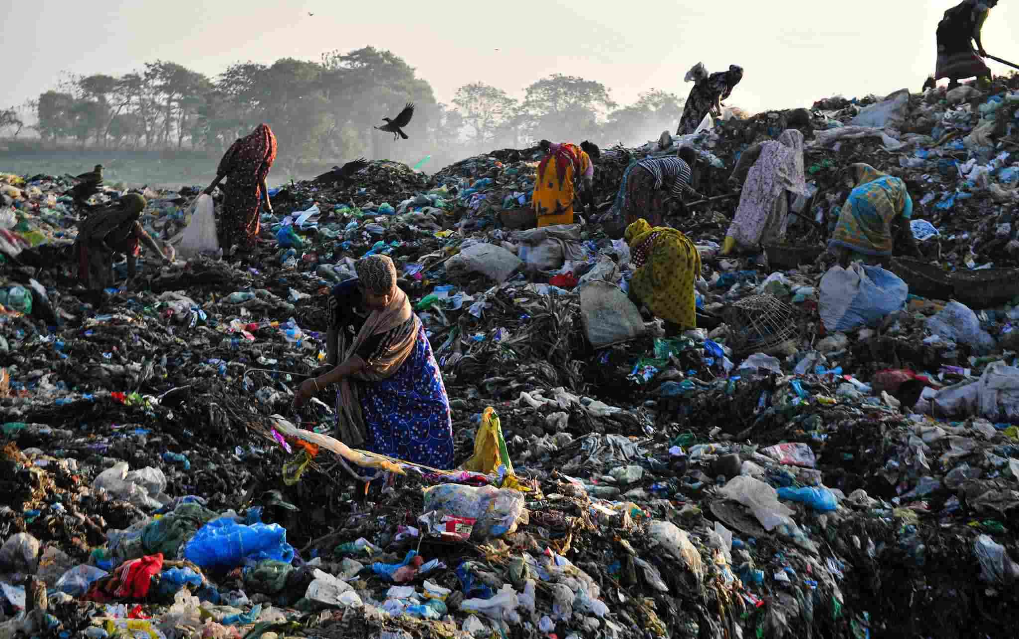 當地時間2023年1月2日,孟加拉國錫爾赫特,工人們在一個有毒廢物傾倒場工作。
